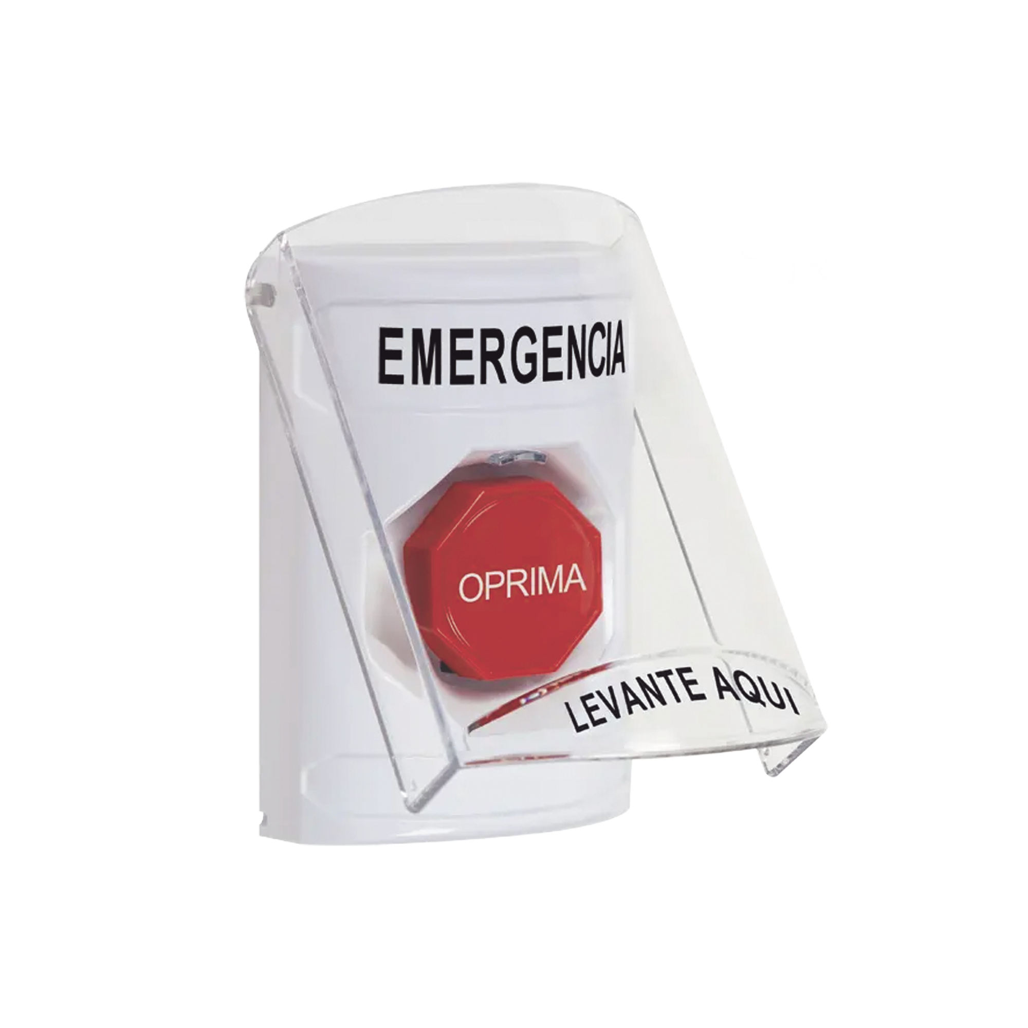 ?Botón Multipropósito, Color Blanco, De Superficie, Con Tapa De Policarbonato, Con Bocina Pre Alarma, Para Interior, Llave Para Restablecer, Texto De Emergencia, Español