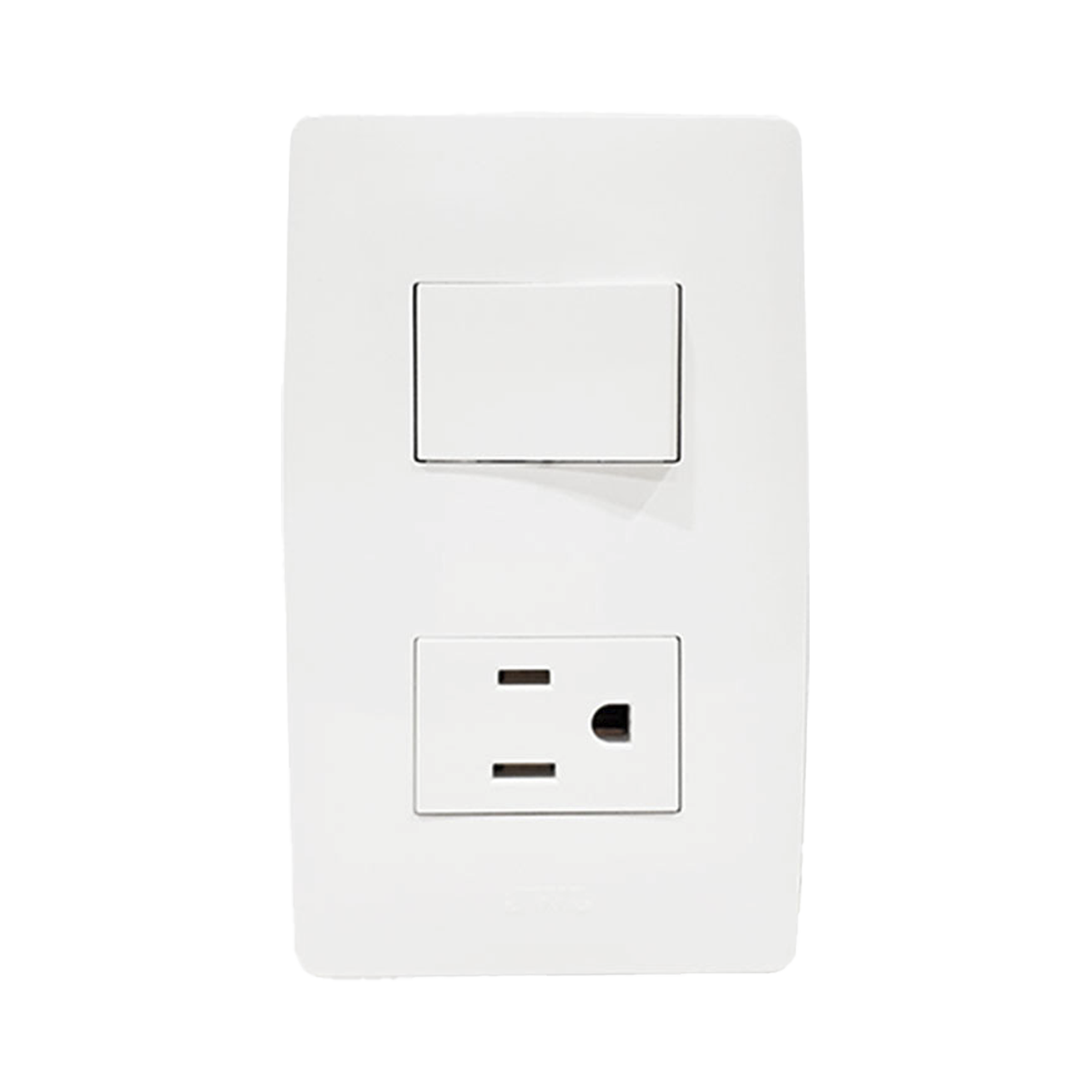 • Placa con 1 interruptores tipo escalera y 1 tomacorriente, para instalación directa en muros de espacios interiores del hogar, negocio o la oficina.