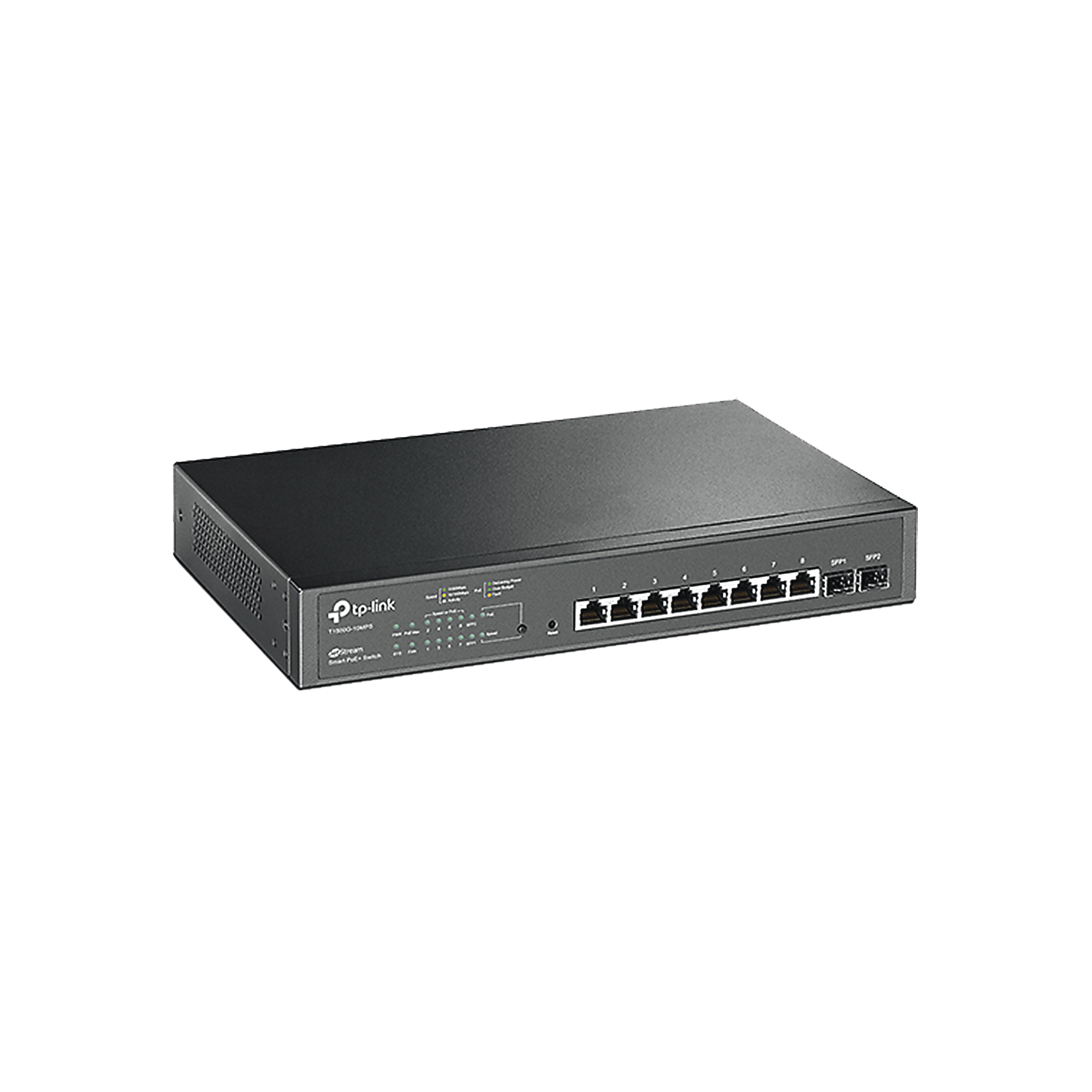 El T1500G-10MPS de TP-Link JetStream cuenta con 8 puertos RJ45 gigabits y 2 ranuras SFP, todos los puertos RJ45 admiten el estándar 802.3af / at (PoE +) con una potencia total de 116W y funciones de administración de energía PoE útiles. El switch proporciona un alto rendimiento, QoS a nivel de empresa, estrategias de seguridad útiles y características de gestión de nivel 2 complejas.